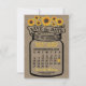 Ces cartes de rendez-vous de mariage de calendrier de septembre 2020 rustiques ont un cadre de pot Mason, une bannière et des tournesols aquarelles, le tout sur un fond de faux burlap. Ces cartes simplement élégantes sont parfaites pour un thème de mariage champêtre. Mettez en valeur votre date de mariage avec l'icône de cœur. Utilisez les modèles faciles pour ajouter les noms de la mariée et du marié, la date, le lieu, et plus encore. ASTUCE : Vous souhaitez modifier le reste du texte ou déplacer le cœur vers une autre date ? "Personnaliser davantage" pour apporter des modifications plus détaillées.
