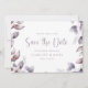 Mariage violet Enregistrer la date. Douce, rêveuse et romantique, cette faire-part de mariage élégante présente un cadre d'aquarelle magnifique de feuilles et de fleurs peints à la main dans des tons monochromes de violet, prune, et rose doux avec script et texte violet assorti. Le dos de l'invitation comprend le même bouquet de feuilles et une photo de fiançailles. Trouvez les objets correspondants dans la collection Elegant Purple Botanical Mariage Collection.