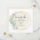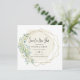 Une façon élégante de faire savoir à vos amis et à votre famille que vous avez reprogrammé votre mariage. Un cadre géographique doré entoure les détails de votre date de mariage. L'arrière - plan blanc d'ivoire mou met en évidence le texte. Save Our New Date est écrit dans un script moderne, avec les détails suivants. De très jolis fleurs sauvages bleus sont nichés dans un feuillage vert sauge feuilles décorent le cadre doré géométrique. L'enregistrement de notre nouvelle carte de date arrière - plan est beige.