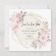 Une façon élégante de faire savoir à vos amis et à votre famille que vous avez reprogrammé votre mariage. Un cadre géographique doré entoure les détails de votre date de mariage. L'arrière - plan blanc d'ivoire mou met en évidence le texte. Save Our New Date est écrit dans un script moderne, avec les détails suivants. De très jolies fleurs violettes et blanches sont nichées dans des feuilles verts de feuillage décorent le cadre géométrique en or. L'enregistrement de notre nouvelle carte de date arrière - plan est beige.
