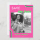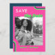 Surprenez vos invités avec ces cartes « Save the Date » vibrantes et élégantes rose et sarcelle avec des fonds rose et sarcelle, un script groovy, votre photo personnalisée et votre texte. Ajoutez facilement vos détails en cliquant sur l'option « personnaliser ».