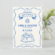 Annoncez votre jour spécial avec une élégance intemporelle en utilisant notre carte de save the date bleue et blanche, inspirée des dessins vintage français. Chaque carte est illustrée à la main avec des teintes bleues exquises, capturant l'essence de l'artisanat français classique tout en insufflant un charme original et mignon. Ce save the date tendance et esthétiquement agréable donne le ton parfait pour une célébration de mariage sophistiquée et mémorable.