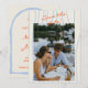 Ce modèle de faire-part de mariage moderne et rétro, funky et minimaliste est idéal pour vous. Si vous recherchez un modèle de faire-part de mariage joli, élégant et facile à personnaliser. Un modèle simple très élégant et unique. Qui présente un arrière-plan crémeux vintage. Avec une mise en page de texte orange manuscrit et une calligraphie manuscrite. Avec un cadre en arche peint à la main bleu ciel et un gâteau orange. Et une photo interchangeable au verso. Saisissez ce faire-part de mariage élégant et rendez vos invitations vraiment engageantes.