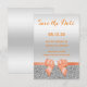 Cartes élégantes et scintillantes de mariage "save the date" avec une image de ruban et de nœud corail romantique et chic sur un fond dégradé argenté brillant et pailleté d'argent. Tout le texte est entièrement personnalisable pour répondre à vos besoins. Si vous avez besoin d'aide pour personnaliser votre produit ou si vous souhaitez des produits assortis, veuillez me contacter via ma boutique et je serai ravie de vous aider. Cette carte peut être utilisée pour tout événement.