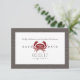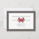 Un mariage rustique à la plage sauve la date avec l'illustration d'un crabe sur le devant et d'une bordure rustique en bois patiné.