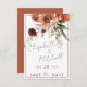 Moderne et rustique, cette carte datant a été conçue avec un bouquet haut de pêche rouille, terre cuite, fleurs brunes et blanches. L'arrière - plan est blanc avec un cadre fin en terre cuite; le dos est une terre cuite molle. Ce design fait partie de la Rustic Terracotta Rust Flowers Mariage Suite de cartes créées par Simply Farmhouse Press.