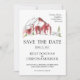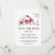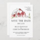 Cette sauvegarde de la carte de date dispose d'une belle image de grange d'aquarelle rouge qui est parfait pour un mariage de style rustique ou vintage.