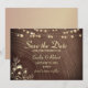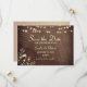 Annoncez votre jour spécial avec cette charmante carte Save the Date rustique, dotée d'une texture de grain de bois, de guirlandes lumineuses et d'élégants accents floraux dorés. Avec un look cosy et romantique, cette carte donne le ton parfait pour les mariages d'automne ou d'hiver, les réceptions de grange ou les célébrations boho.
