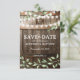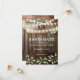 Donnez le ton à votre mariage campagnard grâce à nos cartes ‘Save the Date’ conçues de façon unique. Bask dans la beauté rustique d'un arrière - plan de tonneau de chêne foncé en grange, illuminé par des lampes à cordes scintillantes. La touche d'élégante aquarelle verte, associée à votre monogramme et à votre libellé mariage moderne en font un souvenir inoubliable pour vos invités.