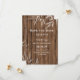 Cette annonce de mariage Save the Date présente un joli overlay de saule sur un fond en bois rustique dans des tons de brun, blanc et noir.