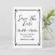 Cette simple carte de date minimaliste présente un design épuré avec un cadre délicat dessiné à la main, avec des coeurs noirs dans chaque coin. Le cadre encercle délicatement vos informations de mariage, en utilisant un mélange simple et élégant de scripts et de polices manuscrites. Sur le dos, vous trouverez un monogramme personnalisé des initiales du couple. Ce design offre un look frais et ludique avec une touche de charme et est entièrement personnalisable pour convenir à votre style. Idéal pour les couples qui recherchent un design à la fois sobre et tendance. Disponible sous forme de carte imprimée ou de téléchargement numérique pour un partage aisé ou une impression locale.