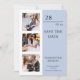Mariage simple Enregistrer la date Photo Invitations comprend quatre de vos photos préférées, trois sur le devant et une au verso avec le texte "Enregistrer la date" dans une élégante typographie de script moderne. Simple, moderne et élégant pour la célébration de votre mariage. Conçu par ©Evco Studio www.zazzle.com/store/evcostudio