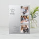 Mariage simple Enregistrer la Date Photo Picture Invitations comprend quatre de vos photos préférées, trois sur le devant et un au verso avec le texte "Save the date" dans élégante typographie de script moderne sur un arrière - plan brillant d'argent. Simple, moderne et élégant pour la célébration de votre mariage. Conçu par ©Evco Studio www.zazzle.com/store/evcostudio