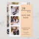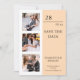 Mariage simple Enregistrer la Date Photo Picture Invitations comprend quatre de vos photos préférées, trois sur le devant et un au verso avec le texte "Save the date" dans élégante typographie de script moderne sur une pêche et un arrière - plan blanc. Simple, moderne et élégant pour la célébration de votre mariage. Conçu par ©Evco Studio www.zazzle.com/store/evcostudio