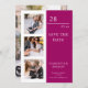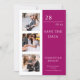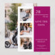 Mariage simple Enregistrer la date Photo Picture Invitations comprend quatre de vos photos préférées, trois sur le devant et un au verso avec le texte "Save the date" dans élégante typographie de script moderne sur un arrière - plan violet et blanc. Simple, moderne et élégant pour la célébration de votre mariage. Conçu par ©Evco Studio www.zazzle.com/store/evcostudio