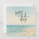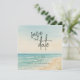 Célébrez votre histoire d'amour avec ce faire-part élégant de mariage sur la plage en élite. Avec un design aquarelle romantique de la plage, des vagues océaniques douces et un rivage sablonneux, cette invitation donne le ton parfait pour votre célébration au bord de la mer. La mise en page minimaliste met en avant la phrase « enregistrez la date » dans une typographie moderne, ce qui la rend idéale pour les couples qui apprécient la simplicité et le style. Également disponible en invitation numérique.