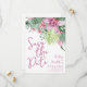 Un design tropical qui embrasse la beauté tranquille de la nature mélangée à une touche ludique qui vous aidera à vous amuser. Un mélange de feuilles tropicales vertes apaisantes, y compris des feuilles de bananier, des palmiers, des feuilles de monstera et des plantes princesse rose, ainsi que des fleurs d'orchidées violet-rose apaisantes et des fleurs de protea, entrelacées avec divers autres feuillages. Amélioré par une police manuscrite moderne, cette impression enchanteresse irradie de charme et de sophistication. Ce design polyvalent apporte une sensation de paradis tropical à n'importe quel cadre ou occasion spéciale, ce qui le rend parfait pour un mariage à destination, ou simplement lorsque vous voulez ajouter une touche tropicale. Feuillage d'Orchidée Violette Floral Tropical Mariage Enregistrez la Date