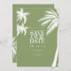 Le Mariage Tropical au Palmier Vert Save the Date présente un design luxuriant avec des palmiers verts vibrants, parfait pour annoncer votre jour spécial avec une touche d'élégance exotique et de charme tropical.