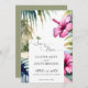 Mariage tropical plage enregistrer la carte de date, l'aquarelle palmiers rose hibiscus pour l'été tropical destination mariage enregistrer la carte de date
