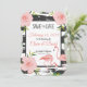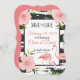 Charmez vos invités avec cette charmante impression "Save the Date" adorable et modifiable, un mélange délicieux de fantaisie et d'élégance. Le design présente un arrangement ludique de flamants roses fantaisistes et de fleurs vibrantes sur un fond de rayures noires et blanches vives et désordonnées. Cette carte "Save the Date" dégage une atmosphère de célébration joyeuse, parfaite pour annoncer votre journée spéciale à venir.
