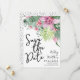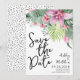 Un design tropical qui embrasse la beauté tranquille de la nature mélangée à une touche ludique qui vous aidera à vous amuser. Un mélange de feuilles tropicales vertes apaisantes, y compris des feuilles de bananier, des palmiers, des feuilles de monstera et des plantes princesse rose, ainsi que des fleurs d'orchidées violet-rose apaisantes et des fleurs de protea, entrelacées avec divers autres feuillages. Ajoutant un élément de plaisir, un fond 'pointillé désordonné' ou 'pointillé dalmatien' noir au dos infuse le design d'une touche ludique (vous pouvez le supprimer si vous le souhaitez). Amélioré par une police manuscrite moderne, cette impression enchanteresse irradie de charme et de sophistication. Ce design polyvalent apporte une sensation de paradis tropical à n'importe quel cadre ou occasion spéciale, ce qui le rend parfait pour un mariage à destination, ou simplement lorsque vous voulez ajouter une touche tropicale. Chic Moderne Fleurs Aquarelle Tropical Mariage Éviter la