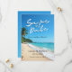 Annoncez votre mariage au paradis avec ces cartes tropicales “Enregistrer la Date”, mettant en vedette une scène de plage tropicale ensoleillée avec des palmiers et des vagues océaniques. Parfait pour un mariage à destination, ce design peut être personnalisé avec vos noms, date de mariage et lieu. Une belle façon de faire savoir à vos invités de marquer leurs calendriers et de se préparer pour votre célébration inoubliable au bord de la mer.