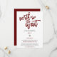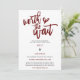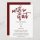 Car lorsque les circonstances exigent malheureusement que vous changiez la date de votre mariage, c'est un moyen pratique de faire connaître à vos invités votre changement de plan et de nouvelle date dès que possible. Ce design typographique a un élégant script burgundy au sommet Worth the Wait avec un motif cardiaque. Le reste du texte qui est dans un mélange de bordeaux et de noir, vous pouvez facilement personnaliser. Les couleurs texte et arrière - plan des deux côtés peuvent être changées si vous le souhaitez via l'option Customiser plus.