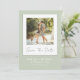 Célébrez votre prochain mariage avec cette carte de date élégante et moderne, conçue pour mettre en valeur votre histoire d'amour avec simplicité et charme. L'avant présente une photo personnalisable encadrée en blanc et placée contre un arrière - plan vert sage doux, créant une esthétique sereine et romantique. Personnalisez avec vos noms, votre date et votre emplacement pour une faire-part significative et polie. L'arrière offre un espace pour un texte personnalisable supplémentaire, parfait pour partager les détails dont vos invités ont besoin. Un très beau choix pour les couples qui aiment le design minimal, les tons terre douce et une touche intemporelle et personnelle.