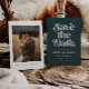 Rétro et élégant enregistrer la carte de date avec la police boho qui dit "enregistrer la date" en couleur verte. Vous pouvez ajouter une photo au dos.