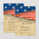 Annonces de mariage à l'américaine de style vintage avec drapeau USA pour mariage patriotique, militaire et du 4 juillet dans des nuances de rouge, blanc, bleu et marron. ^