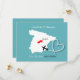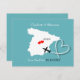 Un joli save the date pour les couples qui se marient sur le continent espagnol avec une silhouette blanche de l'Espagne sur fond sarcelle avec de doux cœurs d'amour rouges et si facile à personnaliser avec vos noms et message personnels