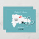 Un amusant save the date pour les couples qui se marient en République dominicaine, Hispaniola avec une carte en silhouette blanche sur sarcelle avec de doux cœurs d'amour rouges et si facile à personnaliser avec vos noms et message personnels