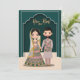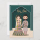 Carte d'invitation de mariage la mariée et le marié couple mignon en tenue traditionnelle indienne personnage de dessin animé