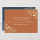 Cette invitation rustique, élégante et boho bleu marine et terre cuite Mariage Enregistrer la date présente des fleurs d'or boho, ce qui en fait le choix parfait pour un mariage de automne. Un beau mélange de tons terreux et de style chic pour donner le ton à votre journée spéciale.