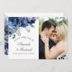 Mariage de la Marine et des fleurs blanches sauvez la date cartes photos avec des accents de feuille d'argent.