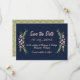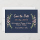 Annoncez votre date de mariage à votre famille et amis avec ces cartes modernes Navy Floral Enregistrer la date. Vous avez la possibilité de déplacer les éléments de conception et de modifier le texte de la date, la police/la couleur pour adapter votre style.