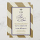 Ce mariage élégant Save the Date faire-part design par The Spotted Olive™ présente un arrière - plan rayé or & crème légèrement patiné, une image vintage d'une ancre et les mots "Save the Date" typeset dans une élégante police de caractères. Veuillez noter que l'image arrière - plan est légèrement patinée et que les imperfections et les imperfections font partie du charme de ce design. Personnalisez facilement cette invitation en cliquant sur le bouton "customiser". Copyright © 2014 The Spotted Olive. Tous droits réservés.