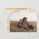 Modern and stylish save the date card featuring a text that says "mark your calendars" along the curved frame photo. One photo in the front and one on the back. The background is cream.