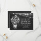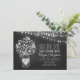 Chalkboard enregistrer la carte postale date avec bocal de mason plein de fleurs sauvages, marguerites, feuilles et les coeurs d'amour et lumières scintillantes accrochées au fil. Romantique et rustique mignon ardoise gris tableau enregistrer les cartes postales de date avec grand coeur d'amour et les initiales de mariée et mariée dedans.