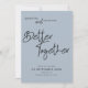Un design informel moderne pour demander à vos invités d'enregistrer votre date de mariage avec une écriture manuscrite noir script set pour Better Together au centre de coordonner avec le "et" dans le même script set entre vos noms. Le reste du texte peut être facilement personnalisé. Un arrière - plan bleu foncé est à l'arrière. Les couleurs texte et arrière - plan peuvent être changées en couleurs différentes si vous le souhaitez via l'option personnaliser.