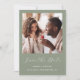 Cette simple et minimaliste carte Save the Date présente une photo carré au-dessus des mots "Save the Date" dans un élégant script d'écriture manuscrite blanche, suivie des noms du couple, de la date mariage et de la ville en sans serif police sur un arrière - plan vert sage. Ajoutez un message plus détaillé avec des informations supplémentaires sur l'inverse.