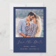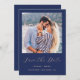 Cette simple et minimaliste carte Save the Date présente une photo carré au-dessus des mots "Save the Date" dans un élégant script d'écriture rose vif, suivi des noms du couple, date du mariage et ville en sans serif police sur un arrière - plan bleu marine. Ajoutez un message plus détaillé avec des informations supplémentaires sur l'envers en bleu marine sur un arrière - plan bleu marine, ainsi qu'un code QR pour aider les invités à accéder à votre site mariage.