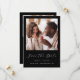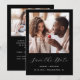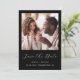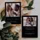 Cette carte simple et minimaliste Save the Date comporte une photo carrée au-dessus des mots "Save the Date" dans un élégant script écriture manuscrite blanche, suivie des noms des mariés, de la date du mariage et de la ville dans une police sans serif sur fond noir. Ajoutez une deuxième photo horizontale et un message plus détaillé avec des informations supplémentaires au verso.