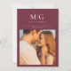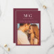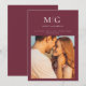 Minimal Chic | Monogram Photo Save the Date - est une annonce/invitation moderne et chic comportant une photo des mariés, ainsi que leur monogramme/initiales. Parfait pour les mariés qui adorent le style minimaliste. Présenté ici en merlot (bourguignon), vous pouvez cependant changer facilement la couleur de fond pour la coordonner avec votre thème de mariage. Save the Date fait partie d'une collection
