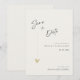 This minimal and elegant save the date invitation is perfect for a modern wedding. Design features an handwritten font and modern minimalist design with a golden heart. You can change the names, wedding location and date, click «Personalize».