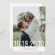 Carte de mariage "Save the Date" 5x7 verticale avec une typographie simple et moderne, avec une grande date en surimpression sur votre photo que vous téléchargez sur le modèle, et où vous pouvez saisir vos noms, le lieu et la date de votre mariage pour une conception rapide et facile qui fonctionnera avec le thème que vous choisirez ultérieurement. Les couleurs de fond et les polices sont modifiables pour correspondre à votre palette de couleurs, et vous pouvez ajouter plus d'informations ou des photos supplémentaires au verso.