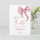 quinceañera minimaliste enregistrer la date une illustration d'un arc rose sur le devant. Vous pouvez ajouter sa photo au verso de la carte. Illustré et dessiné par Patricia Alvarez.
