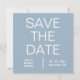Un moderne enregistrer la carte à plat date en bleu poussiéreux. La forme carré et la typographie simple créent une esthétique minimaliste et tendance. Personnalisez les détails à l'avant et à l'arrière pour votre propre carte de faire-part personnalisée.