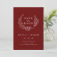 Minuscule couronne feuilletée Bourgogne Enregistrer la date - Save the Date présente une jolie couronne feuilletée avec une typographie moderne. Montré sur orange brûlé, cependant vous pouvez facilement changer l'arrière - plan à votre palette de couleurs dans l'outil de conception. Enregistrer la date fera partie d'une collection.