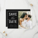 The modern elegant black minimal QR code photo wedding save the date invitation is a unique and contemporary invitation card that combines modern technology with classic design. The invitation features a sleek black background, giving it an elegant and sophisticated look. The minimalist design adds a touch of simplicity to the card, making it perfect for those who prefer a more understated style.